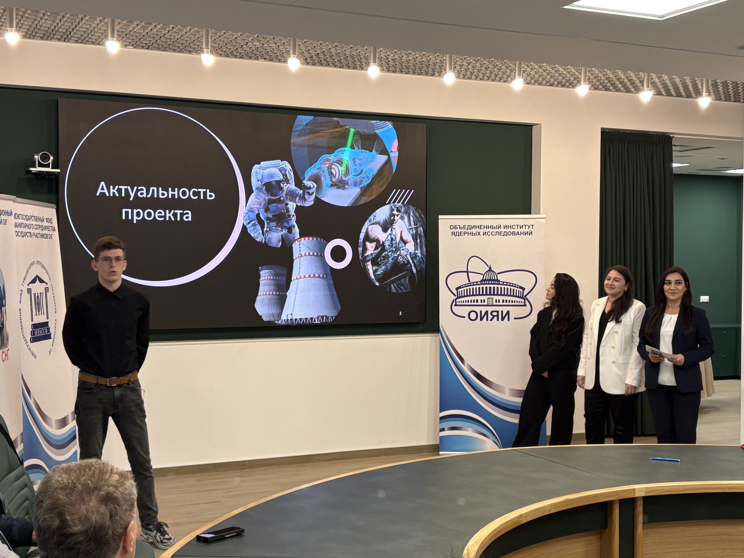20 июня в Доме международных совещаний состоялась защита подготовленных проектов, после чего все участники получили дипломы об окончании стажировки. На защите присутствовали советник директора Института, заместитель научного руководителя ЛЯР Михаил Иткис и руководитель Управления социальной инфраструктуры ОИЯИ Андрей Тамонов. Участники подготовили проекты на следующие темы:
