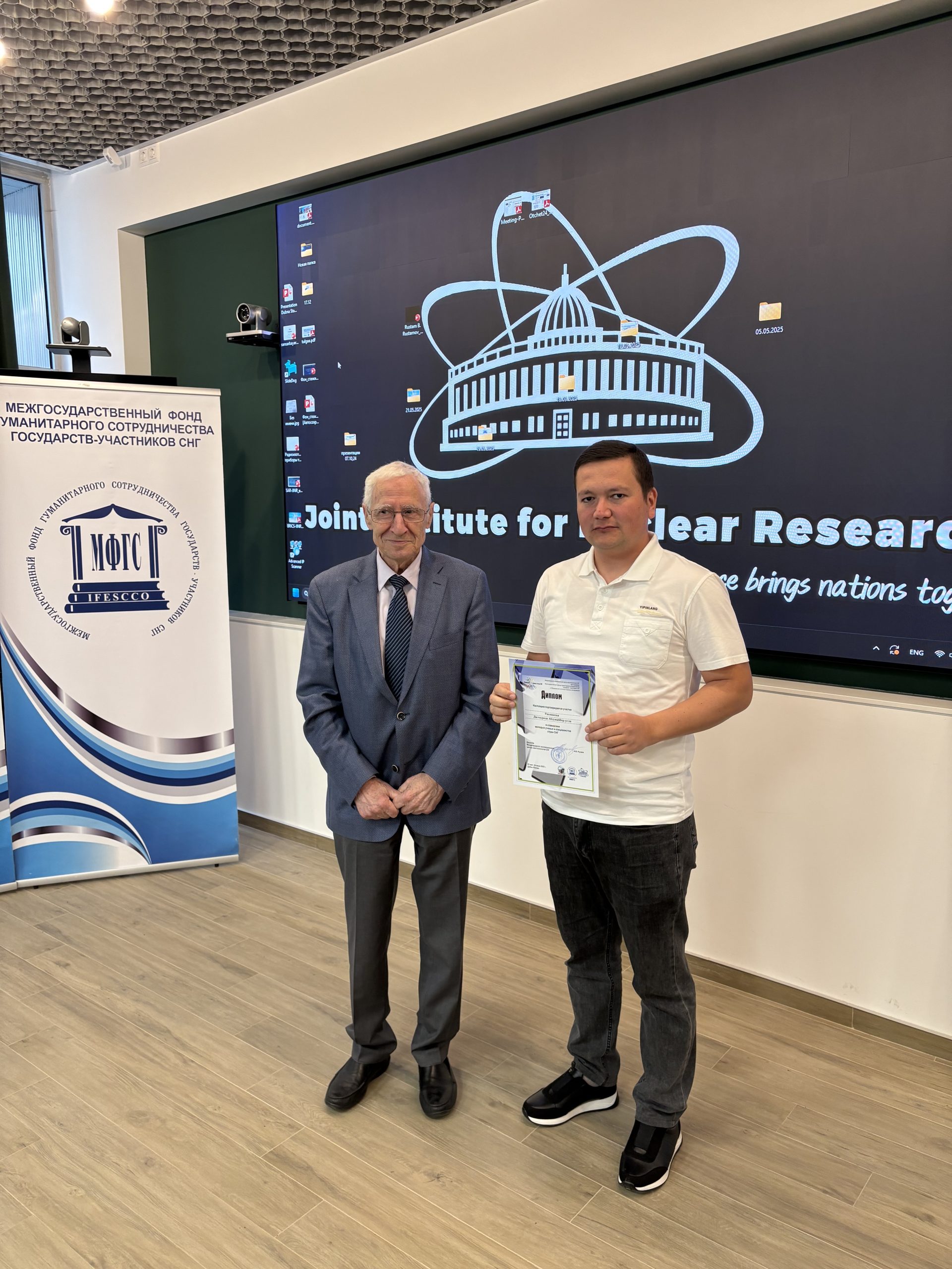 «Благодаря научной стажировке в Объединенном институте ядерных исследований мне удалось установить множество ценных профессиональных контактов и обрести единомышленников в области моих научных интересов. Особенно запомнилось знакомство с талантливыми и увлеченными исследователями, с которыми, надеюсь, удастся сохранить сотрудничество в будущем. Моя стажировка в свободное время от лекций и семинаров проходила в Лаборатории нейтронной физики, где я занимался рентгеновской дифракцией. В освоении этой тематики мне оказал большую помощь Бекарыс Ержанов, сотрудник ЛНФ, чья поддержка и вовлеченность стали важным фактором моего профессионального роста. Это направление мне особенно близко, и я намерен продолжить работать с сотрудниками ЛНФ. Отдельную благодарность хочу выразить заместителю директора ЛНФ Багдаулету Мухаметулы, именно он направил меня и познакомил с Бекарысом».