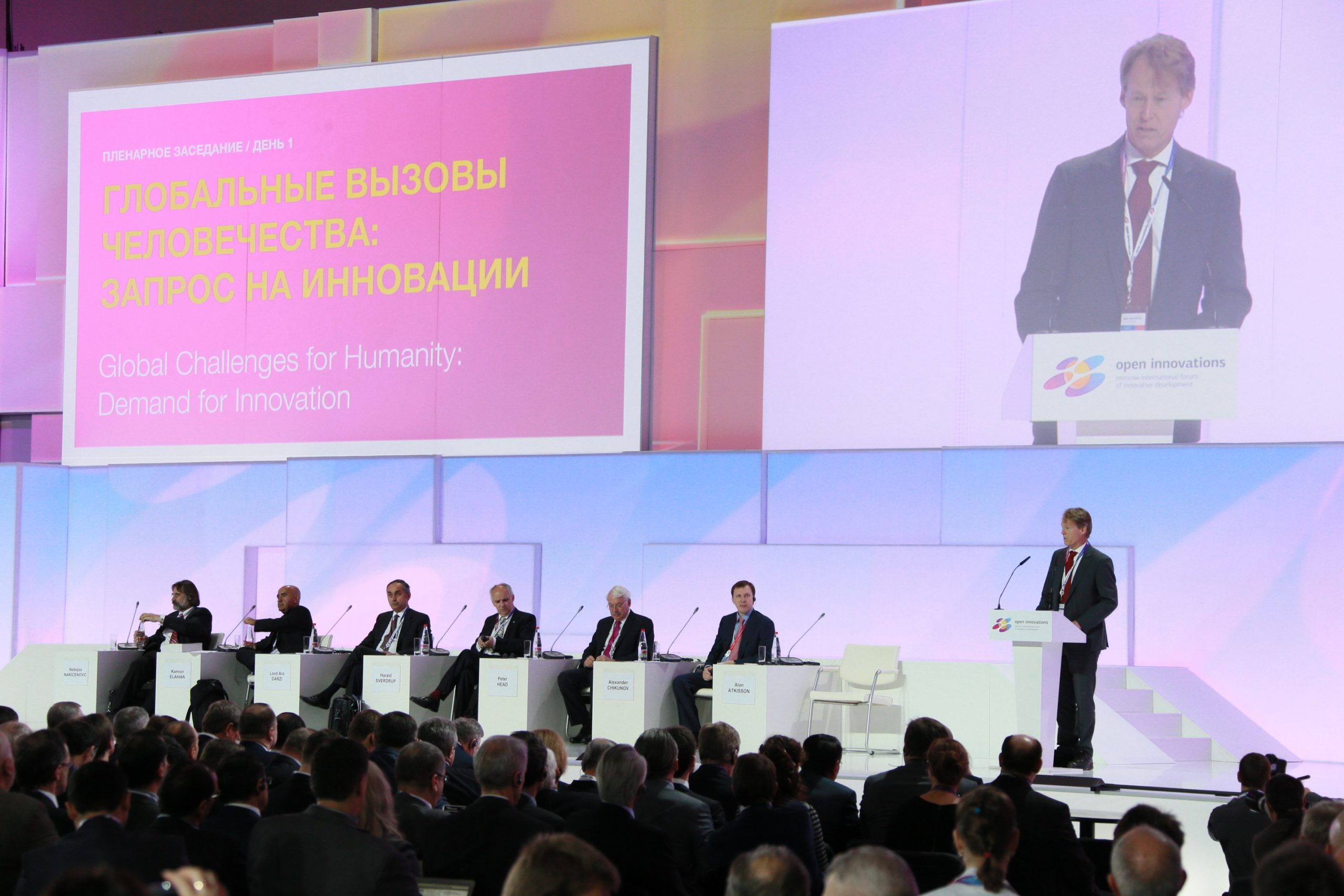 В первый день работы форума на пленарном заседании выступил председатель Правительства РФ Дмитрий Медведев. Мероприятие посетило свыше 4 тысяч представителей бизнеса, государства и научной среды, а в качестве спикеров на форуме выступили более 300 ведущих экспертов по инновационному развитию со всего мира. Такие как, Филипп Эллен Шарп — нобелевский лауреат, профессор Массачусетского технологического университета, Ричард Брэнсон — основатель Virgin Group, Ханс Вестберг — президент компании Ericsson и другие.