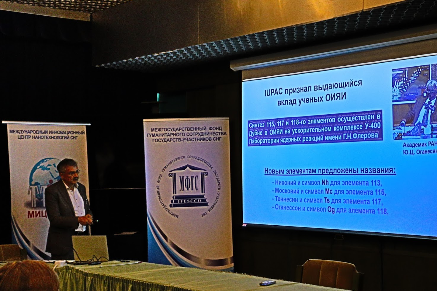 С рассказом об ОИЯИ выступил директор Центра «Нанобиофотоника» Лаборатории нейтронной физики Г. М. Арзуманян — для участников стажировки был представлен доклад об истории создания Объединенного института ядерных исследований, о крупных международных проектах, реализуемых ОИЯИ совместно с научными партнерами, об особенностях и уникальности установок Института, которые им предстоит посетить в течение месяца.